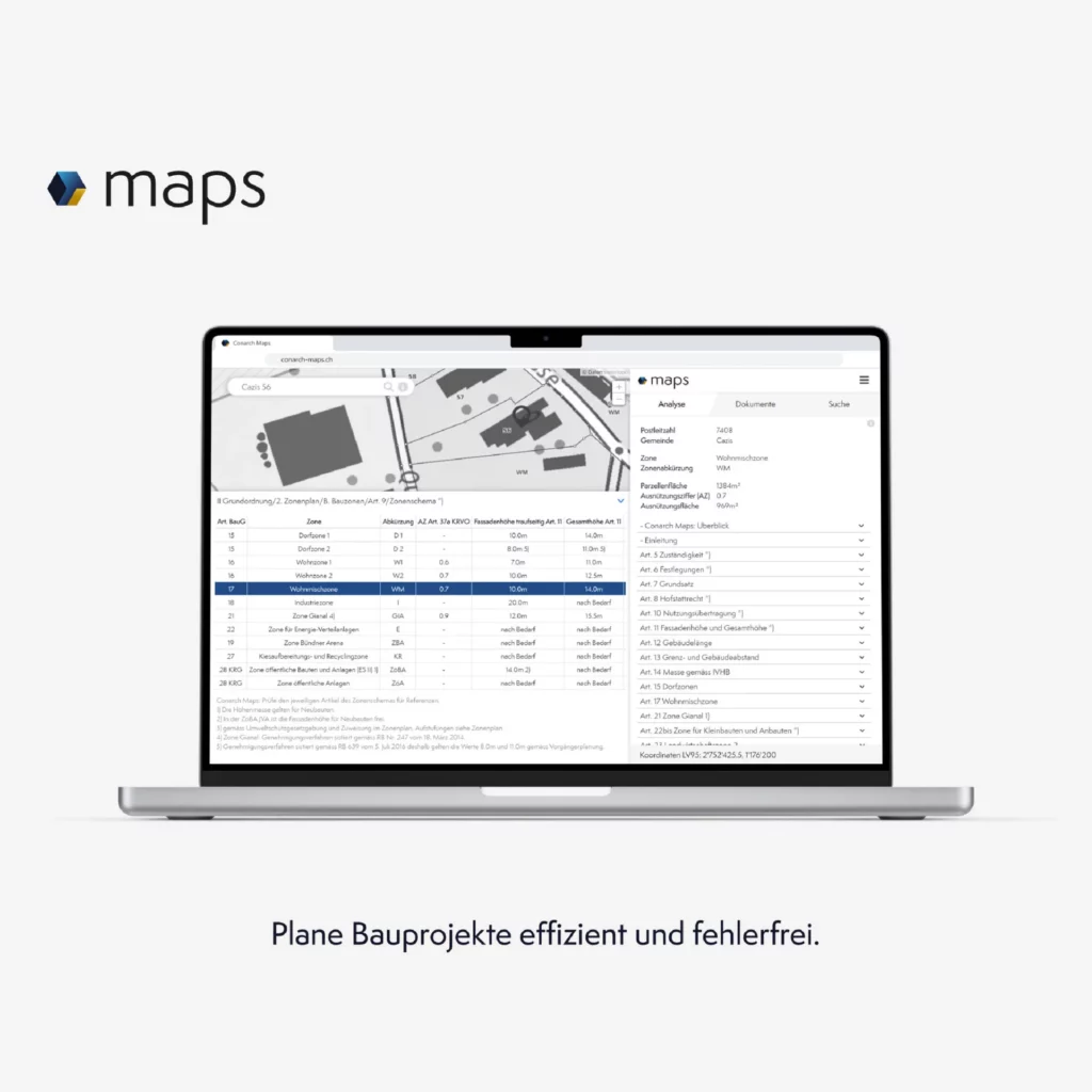 Die schweizweit einzigartige Onlineplattform für das öffentliche Baurecht «Conarch Maps» ermöglicht Gesuchstellern den schnellen Zugang zu relevanten baurechtlichen Dokumenten einer Parzelle.
